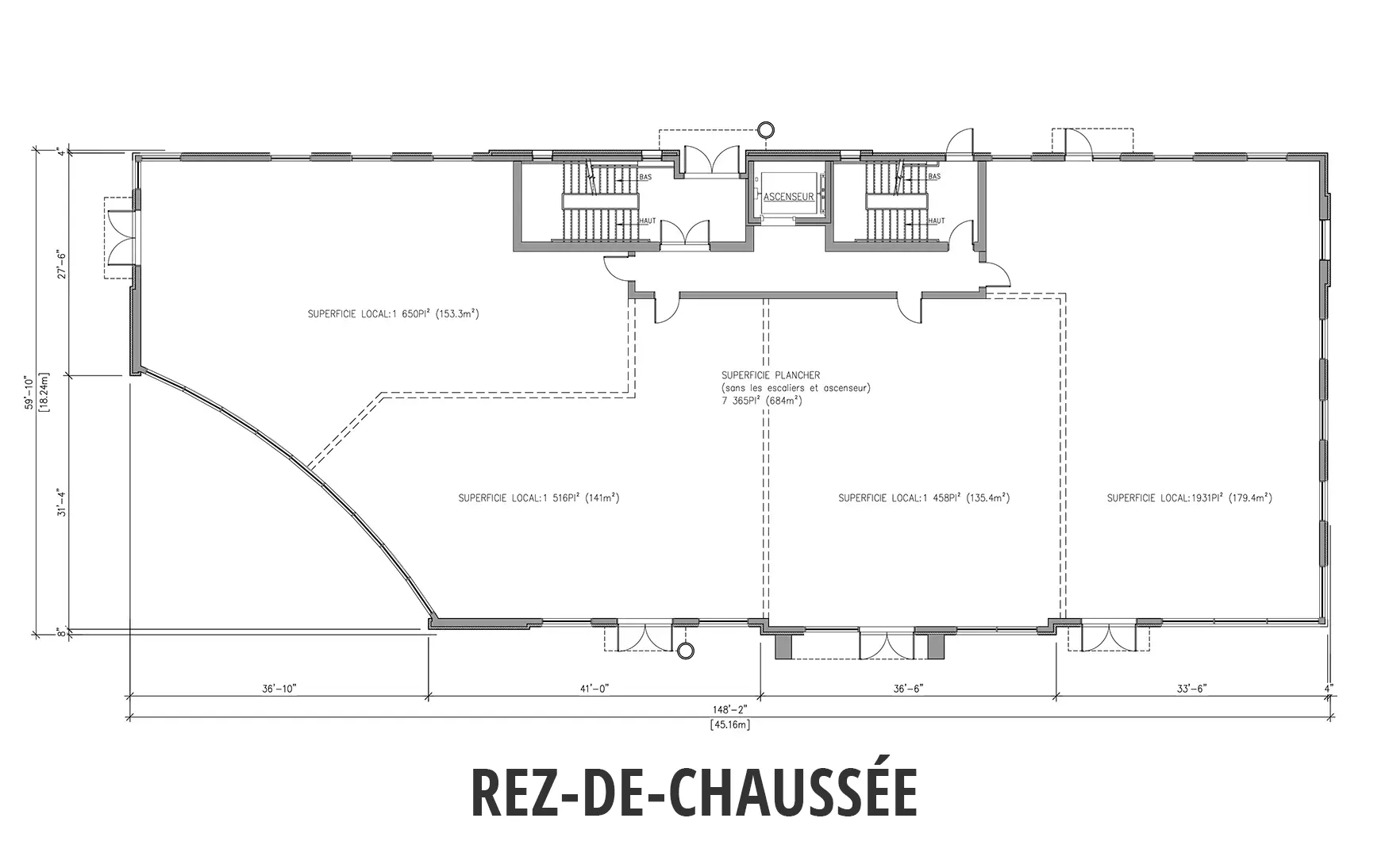 L’espace personnalisable permettra au locataire de louer entre 1 000 pi2 et 7 500 pi2. Sachant ce que recherchent les locataires, nous nous sommes concentrés sur l’offre d’un espace baigné de lumière naturelle. La hauteur du plafond au rez-de-chaussée est de 17 pi, ce qui vous permet de créer une mezzanine pour maximiser votre espace. Le deuxième étage offre une hauteur de 10 pi, sans compter un surplus de 3 pi dans les poutres de plafond.